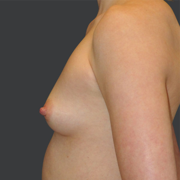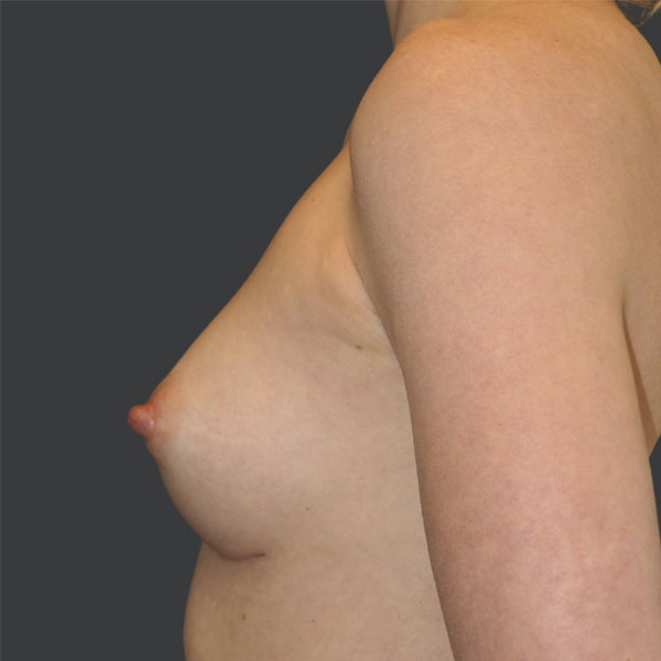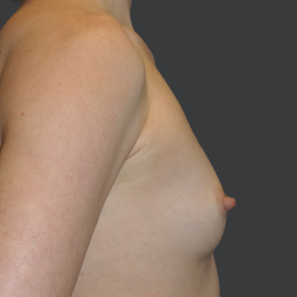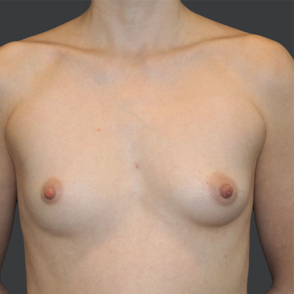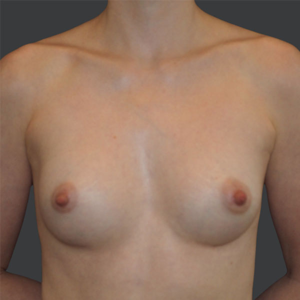 This patient has undergone Breast Augmentation with Silicone Implants. 110 cc on the left and 140 cc on the right side, Low Profile Plus (Sientra), silicone gel smooth round breast implants, 14-Point-Plan.