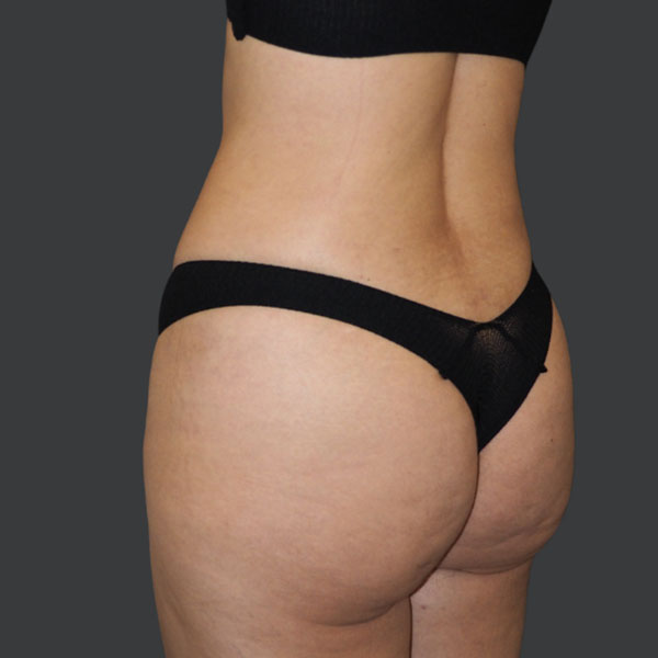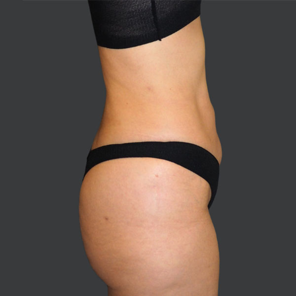 This patient has undergone Hip Reshaping with fat transfer to the hip dips, along with Liposuction 360 of the abdomen and flanks. 425cc on both sides.