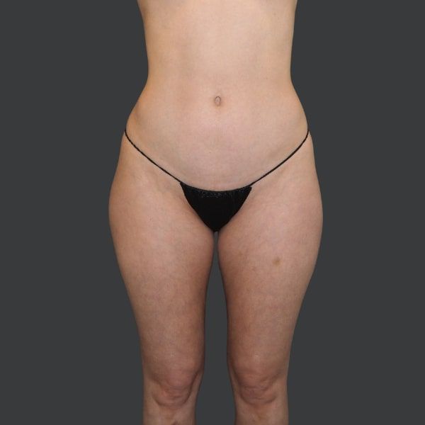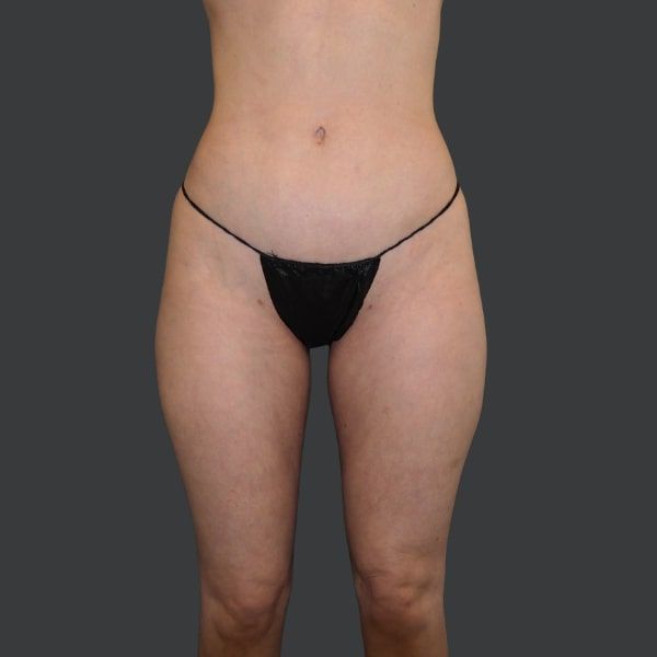 This patient has undergone Liposuction of the front abdomen, inner thighs, outer thighs, and inner knees.